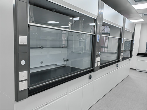 (1)頂部柜門:采雙層玻璃成分,表層為鋼殼,里邊為檢測室專門用耐堿堿6mm厚抗倍特板,都具有防水濕、防變形、抗沖刺等性能方面;這對想要在柜面確定洗衣的室內通風柜,內部襯板想要抗潮和抗腐蝕性想要.機殼與內襯間隔層,可達到水、電、汽體供水管道程序,并可提高認識柜門氣密性與保護。